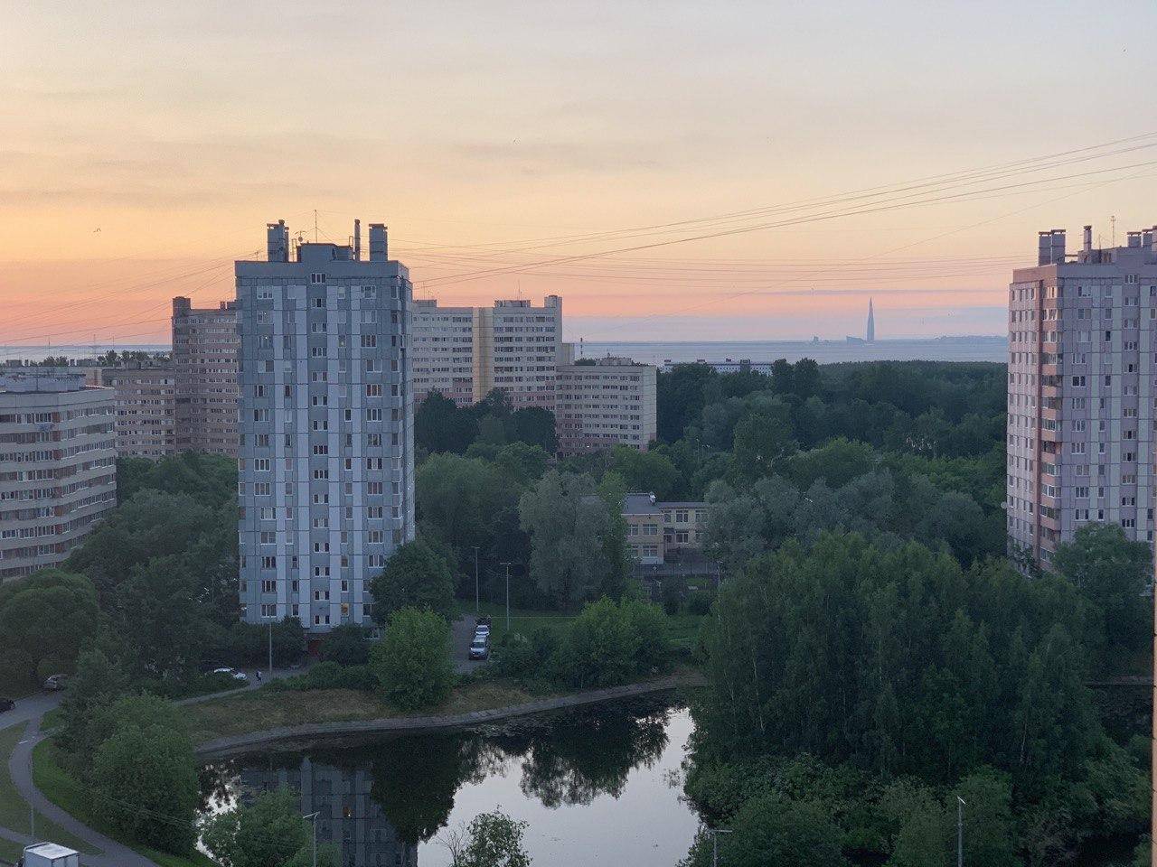 Вот голубая широкая полоса на горизонте с "оком Саурона" - это Финский залив, а эта "темная башня" на другой его стороне, в этой части он узкий.